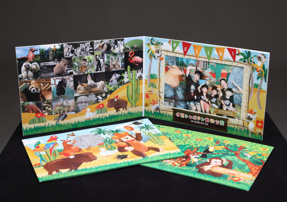 伊豆シャボテン動物公園では、大人気のカピバラ&チンパンジースタジオで、とってもカワイイ記念写真をお撮りしています!伊豆はリゾート地なので、ご家族お揃いで旅行を楽しんでいらっしゃるお客様が多いですが、私たちは家族写真に加えて更に「素敵な想い出」となるプラスワンの写真もお撮りしています!伊豆シャボテン動物公園へお越しの際は、私たちのフォトコーナーをぜひご利用下さい!