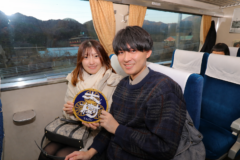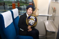 SL大樹ではレトロなSLの車内にて記念写真をお撮りしています。イベントや季節ごとに変わるヘッドマークのアイテムを持って頂き撮影しております。SL車内にて撮影のお声を掛けさせていただきますので是非、ご利用ください。