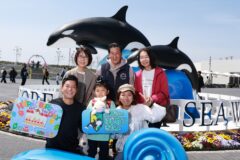 神戸須磨シーワールドでは、メインエントランス入ってすぐのシャチモニュメント前、そして人気アトラクションのドルフィンコミュニケーション(イルカとのふれあい体験)での撮影でご来場の皆様に楽しんでいただいております。ご家族との素敵な瞬間、動物たちとの素敵な瞬間を想い出として残して頂いております。ぜひお越しの際はフォトコーナー・フォトサービスをご利用ください。