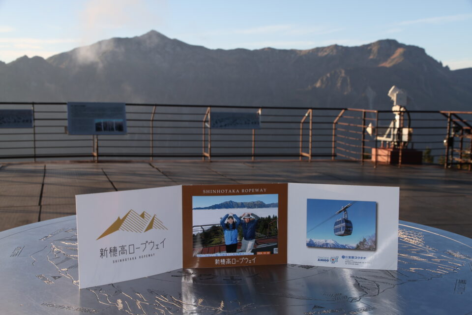 新穂高ロープウェイにお越しの際には、私たちの記念写真にぜひご参加ください。その日その時間一番のお勧め背景でご案内しています。屋上展望台でお待ちしています。