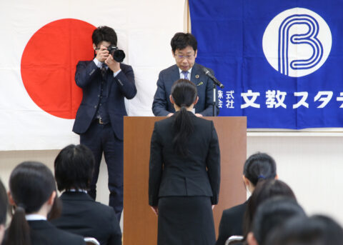 26年春、24名の新入社員をお迎えし本社(滋賀県彦根市佐和町6-15)にて入社式が執り行われました。社長の一圓から一人ひとり辞令を受け取り、社会人として新たな人生がスタートしました!