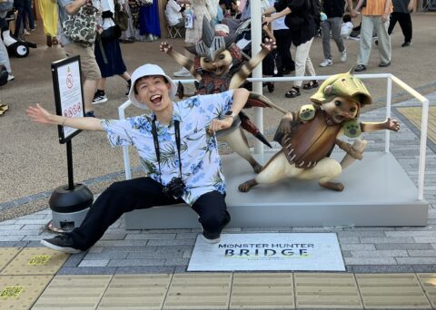トロッコ列車で、お客様の記念写真を撮影しています。
